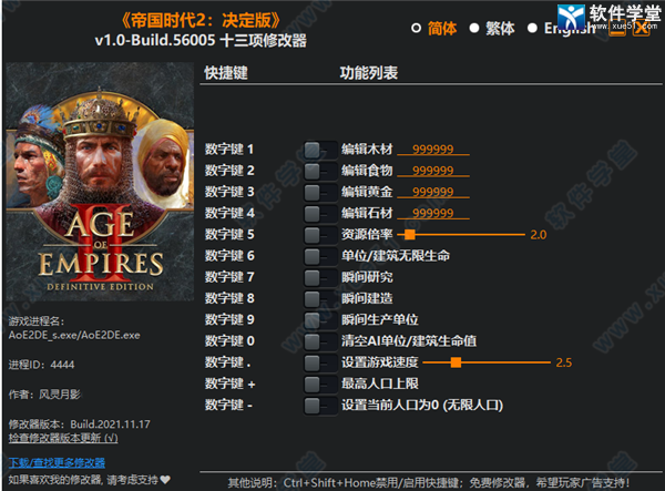 帝国时代2决定版修改器最新版,玩家可快捷的获得资源,以及瞬间研究、瞬间建筑等10种其他快捷功能,让玩家加快游戏节奏,不断快速的侵略扩大队伍,不需要玩家花费过的时间即可称霸属于自己的时代,有需要的小伙伴可以进行下载体验。