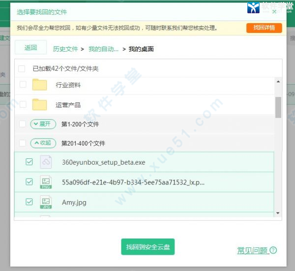 4、如果您的文件夹中的文件过多,建议您可以分组找回,每200文件为一组,分批找回,您可以点击顶部的【找回详情】选项。