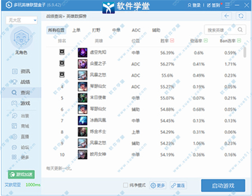 4、多玩LOL盒子功能包括装备推荐、战斗力评估、RANK胜率以及常用英雄查询。