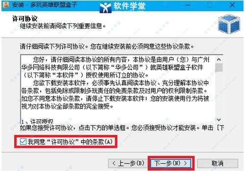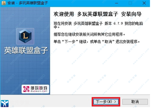 1、我们双击打开在本站下载好的多玩英雄联盟盒子安装包,进入安装向导,选择下一步。