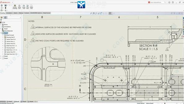在SolidWorks 2021SP3中引入的详图模式提供了一种在几秒钟内打开大量工程图的方法,但不仅限于查看工程图。得益于所增加的性能改进,查看性能超快。细化模式可让您执行典型的细化任务,例如编辑和添加尺寸及注释。该模型不会被加载,因此共享工程图文件很容易,但是请放心,工程图视图是完整的,并且不会丢失细节。新功能包括: