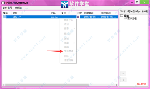 4、添加完后,会有一条数据,然后右键点击,选择文件管理。