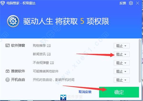 3、阻止软件弹窗界以及推荐软件广告设置,并点击安装。