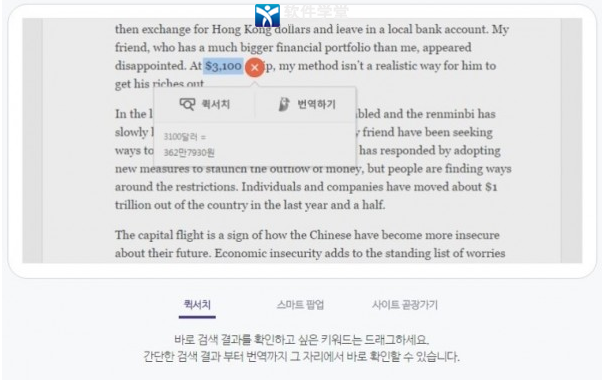 3、另外还有一些贴心技术,比如直接选中网页中的内容,就可以进行结果分析,比如汇率计算、翻译等。还有可方便管理的只能弹出窗口管理功能以及只要输入网站名就能进入网站的网址快速输入功能。