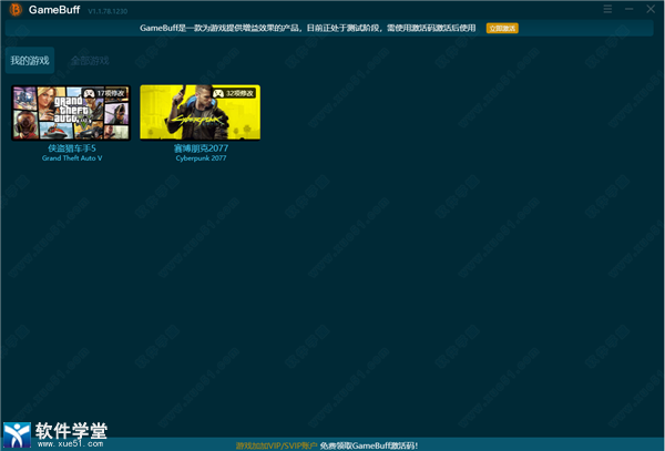 1、安装GameBuff修改器;PS:首次启动软件GameBuff会自动检测电脑中的所有游戏,默认的把已安装游戏显示到“我的游戏”之中;