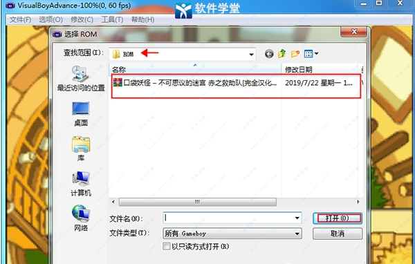 1、首先从网上下载好GBA游戏存放到ROM文件夹中。