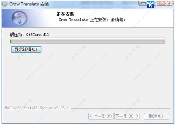 6、Crow Translate中文版正在安装,耐心等待一下。