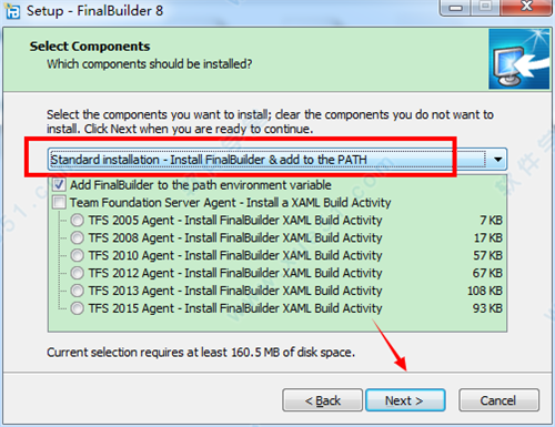 2、选择标准安装模式进行安装,也可以自己自定义安装功能