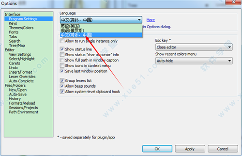 2、初次进入软件为英文界面,点击options>customize,然后在语言选项框中选择中文简体就可以了