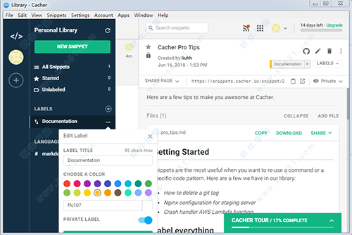 Cacher是一款多功能代码管理软件,由国外优秀程序员团队研究开发,更方便地帮助专业开发人员开发软件。它能够共享所有平台的代码片段,与GitHub Gist同步,可以通过电子邮件、Slack、某推发送片段网址或将它们嵌入到博客中,同步处理、更新。它具有强大的特性编辑器和语法,通过它们突出显示可以支持从python到VMEL的100多种编程语言,其彩色编码标签系统能以任何喜欢的方式组织代码。
