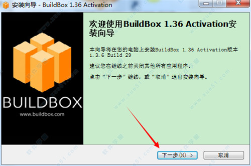 4、再运行解压文件中的“BuildBox_1-3-6_Activation.exe”程序,点击下一步