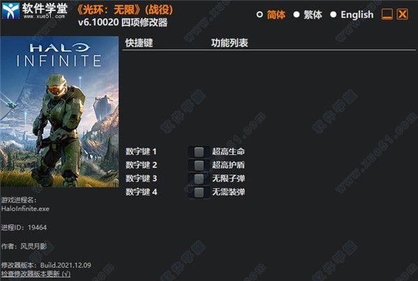 光环无限修改器风灵月影版,它可以在游戏当中改变角色的各种属性,比如可以拥有无限生命,无限护盾或者是无限子弹等等,相信有了这些功能之后各位玩家们在游戏当中肯定就会变得十分厉害,对此有兴趣的小伙伴们可以来该页面进行下载使用!