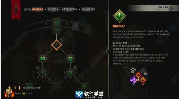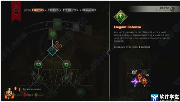 优雅防御(elegant defence)你学会了如何用一个更稳定的施法方式来施展屏障。每当你制造的屏障消失时,这个能力的冷却时间都会减少。