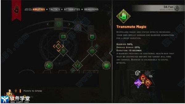 魔力转化(transmute magic)驱散魔法和状态影响可以在短时间内增加你的法术伤害和屏障产生。