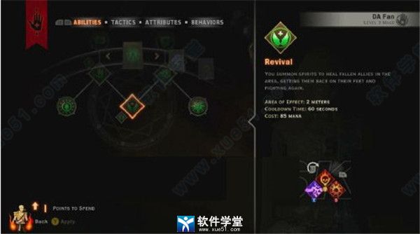 复活(revival)你召唤灵体来治疗在这个区域内倒下的盟友,使他们重新站起来投入战斗。