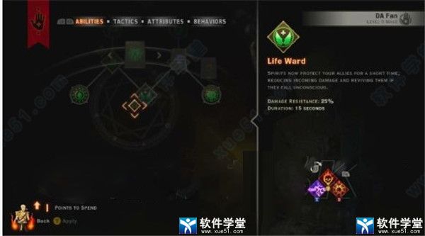 重生(life ward)灵体现在会保护你的盟友一段时间,减少所受伤害并复活失去意识的队友。