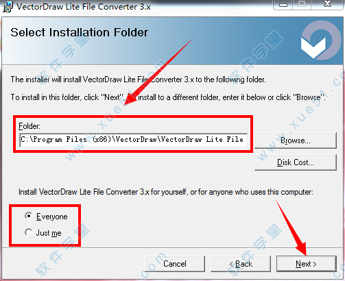 10、选择附文件的安装目录,其他选项默认,点击next。
