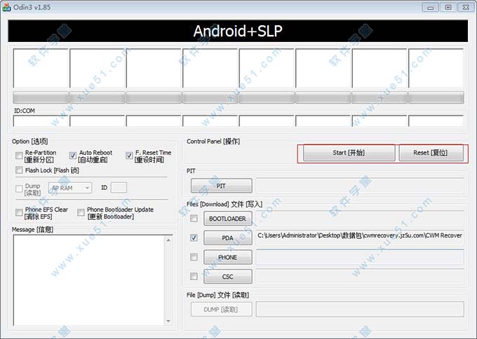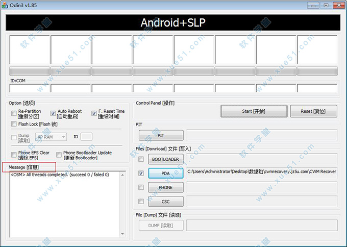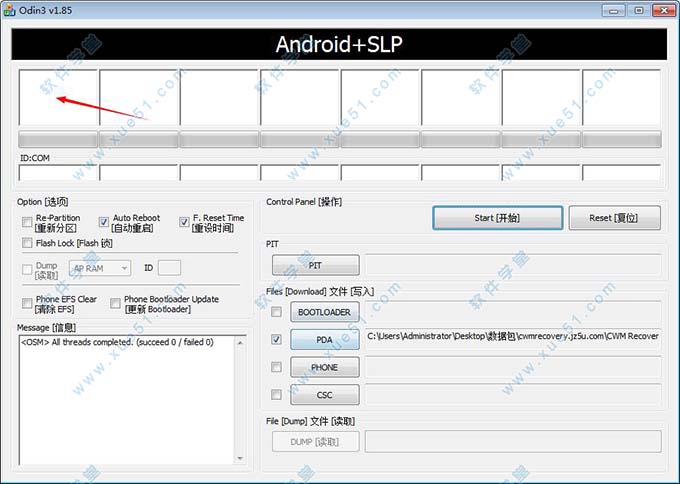 2、刷入以后发现recovery没有变化的,在用odin刷cwm recovery点击了start以后(手机没有自动重启之前)马上按住手机音量上+home键不松,即可进入cwm recovery。