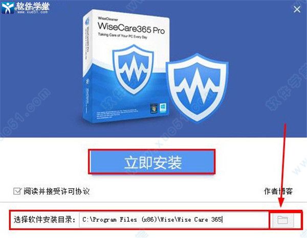 3、勾选接受许可协议,选择软件安装位置,然后点击立即安装。