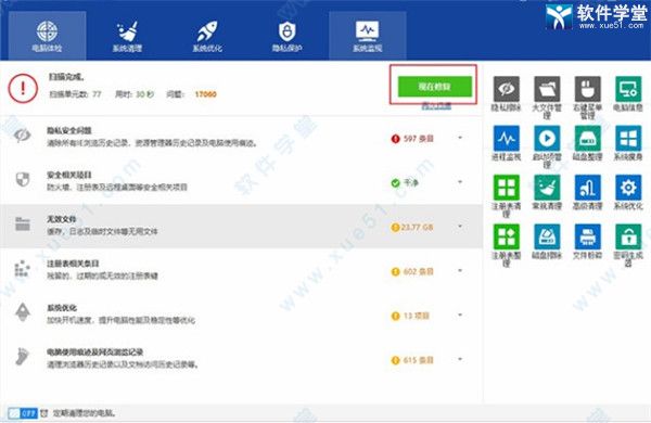 软件全面检测电脑安全,一键修复提高电脑性能。