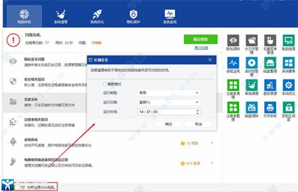 安排自动清理任务1、单击左下方的“ 打开/关闭”按钮可以调出“计划任务”窗口。在这里,您可以安排任务以帮助您自动清理系统。