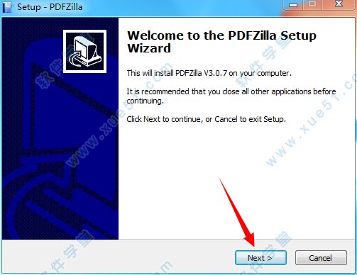 1、在本站下载并解压软件,点击“PDFZillaPortable.exe”文件开始安装。点“next”继续。