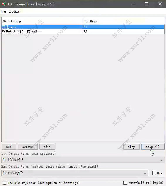 2、然后上边的边框中左边是你的音频文件名,右边可以设置播放音频的快捷键,点击edit是编辑快捷键。
