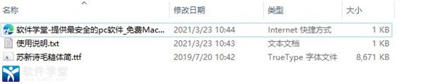 Win系统1、首先在软件学堂下载好苏新诗毛糙体简字体文件包,解压出来得到.tff文件。