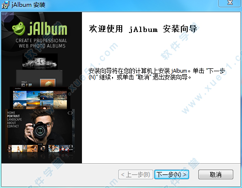 1、本站下载压缩包,解压后双击jAlbum-install.exe开始安装,点下一步继续。