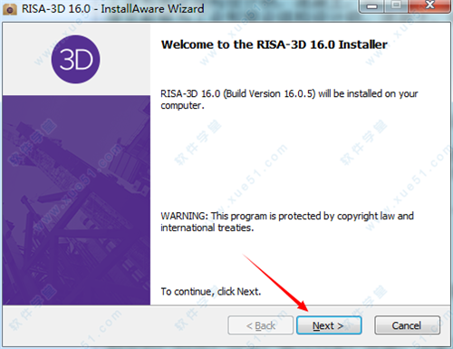 百度网盘下载好RISA 3D资源包,解压后双击应用程序进行安装,点击next