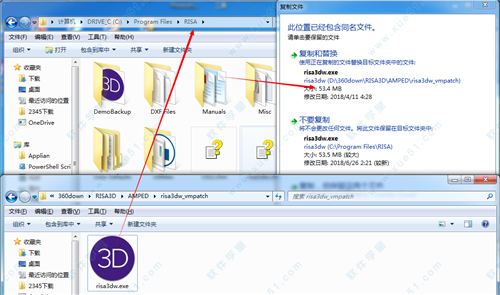 4、将解压文件中的破解补丁复制到软件安装目录下,点击复制和替换,默认路径为:C:\Program Files\RISA