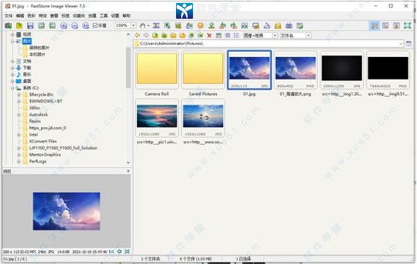 3、是使用界面,找到存储图片的目录,在右侧就会显示预览图了,非常方便。