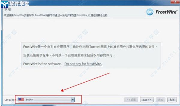 1、运行软件,如图进入软件的导向界面中,这里默认语言为英文,我们将其设置为简体中文。