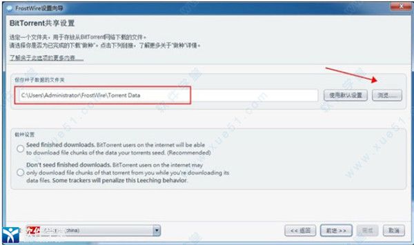 2、在BitTorrent共享设置中,我们设置保存中数据的文件夹,然后在语言中将其设置为中文(中国)。