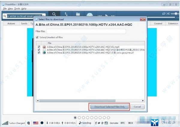 4、选择想要下载文件,然后点击Download Select Files Only只下载选中的文件,就可以开始下载。