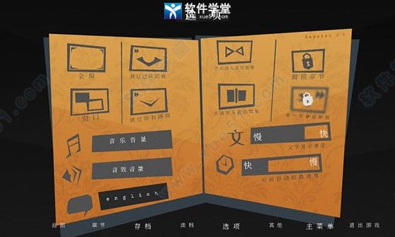 4、这里可设置音乐音量、文章显示速度、对话自动切换速度、全屏等。