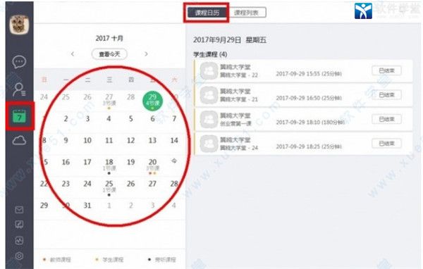 在左侧功能栏中选择【课程】,可查看目前已加入班级的全部课程,以日历形式标注清晰明了。