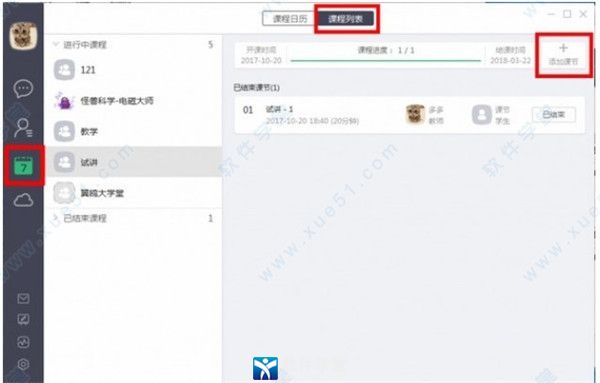 老师在【课程】中选择【课程列表】,可添加课节,方便快速开课。