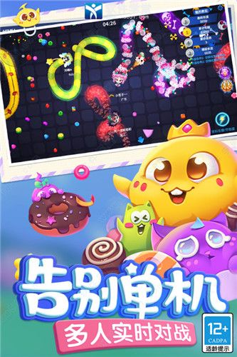 蛇蛇争霸是一款休闲游戏。大家第一时间看游戏名称就知道这是一款怎样的游戏了吧,没错这是一款经典游戏系列,贪吃蛇系列,这一款游戏是由国内深圳市抱一网络科技有限公司精心打造的成的,游戏一上线就获得了非常多的玩家热情追捧,在玩家之间瞬间风靡了起来。这款游戏基本上继承了贪吃蛇玩法,游戏中的画面为卡通为主,游戏中的每一个蛇蛇角色都非常的可爱,但不同传统的贪吃蛇游戏的是,游戏内拥有非常多的不同的游戏模式和玩法,更有大量的皮肤提供给玩家使用,在该游戏中玩家不仅可以单人玩耍,也可以联机玩耍,你可以邀请你的好朋友一起组队进行实时打团对战,使游戏变得更加的刺激而有趣。游戏的玩法也相当简单,玩家只需要操控游戏中的小蛇去吃身边发光的糖果,游戏刚开始可以通过吃身边发光的糖果来增加自己的长度,然后在去吃其他玩家的小蛇,你只要让其他玩家的小蛇碰到你的蛇蛇它就会死亡并且变成发光的糖果,你在吃掉这些糖果快速的成长,游戏中自带的糖果成长值是比较慢的,而吃其他玩家死亡掉的蛇变成的糖果可以快速的变长哦。此外游戏中玩家是可以给蛇蛇换皮肤的,这些皮肤是需要玩家用相应的碎片进行合成,玩家可以通过抽碎片的方式来获得,也可以通过活动以及其他方式来获得蛇蛇皮肤碎片,从而进行皮肤的合成,达到合成的数量时,就可以进行皮肤解锁给蛇蛇带上皮肤了。游戏整体来说还是比较休闲的,玩家可以在闲有的时间体验两把游戏,还是不错的。在此小编给大家带来