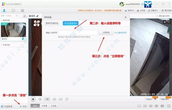 2、单击立刻查询,查询到设备后,在弹出的窗口中输入设备验证码(设备标签上的6位大写字母),完成设备添加。