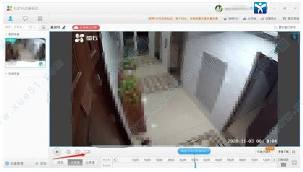 三、远程回放1、在视频播放窗格,单击左下角的“历史录像”,选择卡录像即SD或硬盘录像,若设备也开通了云存储,也可切换。