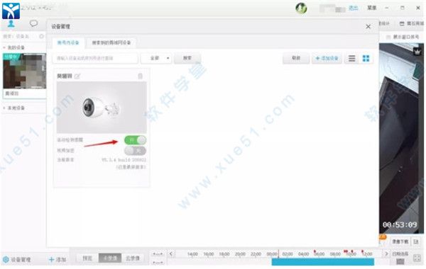 2、在设备管理页面,在对应摄像机图片下方,单击“活动检测提醒”右侧的开关,即可开启/关闭摄像机的活动检测提醒。