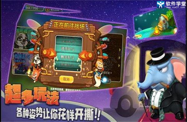 我们可以在对战的过程中不断的解锁这些道具,而且对战获胜之后还可以获得很多的经验,当经验足够的时候,我们就可以对我们的动物进行升级了,等级越高的话杀伤力越强。
