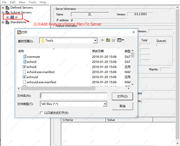 3、打开Subnet Servers,右键点击zl(也就是计算机名,每个人显示可能都不同),选择Add Feature>Froma File>To Server