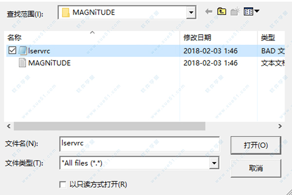 4、载入安装包“MAGNiTUDE”目录下的“lservrc.BAD”