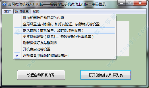 晨风微信机器人,是继热门于数百万qq群的晨风qq机器人之后的又一品牌力作,可以无缝转移所有晨风qq机器人中的自定义游戏和各类接口。各种强大的自定义游戏指令、语法、接口功能,因为同晨风qq机器人使用说明中的内容,并无二致,所以暂不赘述。 目前该版本,主要是完成了从晨风qq机器人的框架的迁移工作,qq群和微信群都有的功能,比如成语接龙、智力抢答、看美女、冒险游戏、钓鱼游戏、看美女、排行榜、骰宝游戏、回复文本消息、发图片、踢人、禁闭、奖励、扣除、赠予宝物之类的,用户依然按照晨风qq机器人的老习惯设置和开启即可。