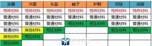 这种情况对于头盔、鞋子、护腕、项链、戒指这五个部位来讲,当特殊材料跟普通材料不属于同类的时候,就会出现无法再继续放相生材料的情况,即变成了方式一,这种情况会降低极品装备产生的概率,需要特别注意。