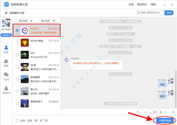 6.支持把iOS设备被扫描出的待恢复陌陌数据恢复到电脑上