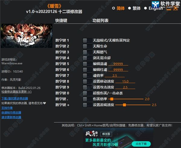 暖雪 warm snow 修改器最新版 v1.1.0.9附怎么用