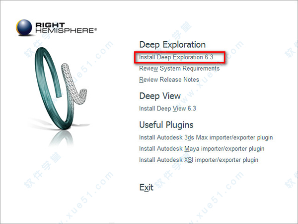 百度网盘下载中文破解版软件安装包,运行DeepExploration633Complete程序,然后点击“Install Deep Exploration 6.3”进行软件安装